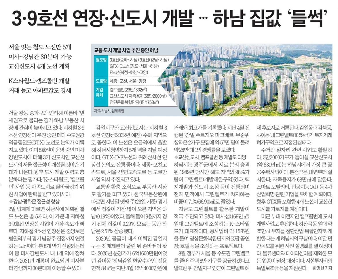 1. 신분당선으로 인해 수지의 가치가 상승한 것처럼 9호선 연장의 결과가 하남시의 가격을 상승시킬까?