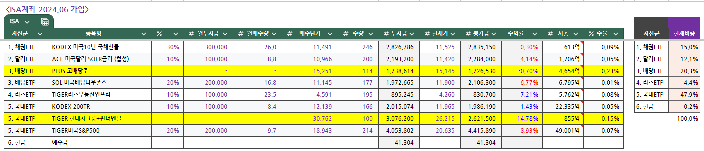 주린이 ISA자산 포트폴리오_2024.11.07