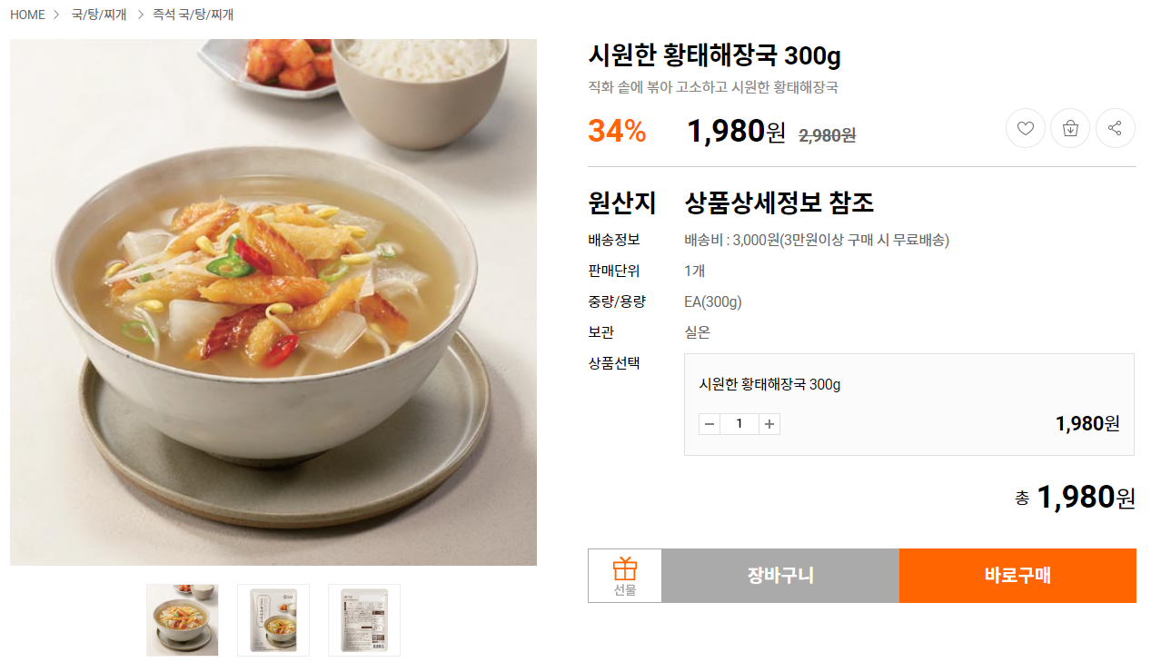 시원한 황태해장국이 1,980원?