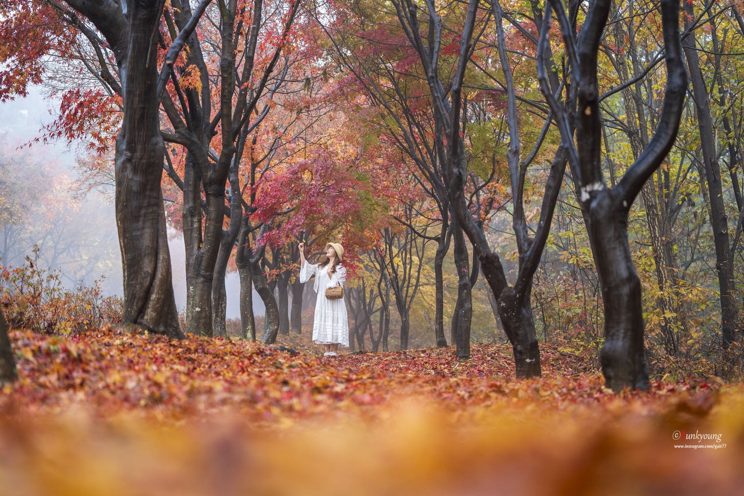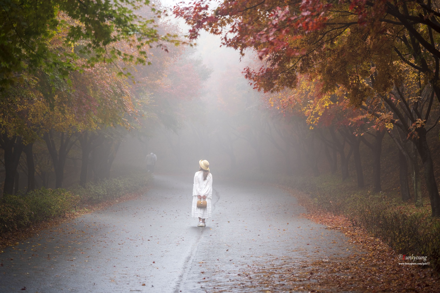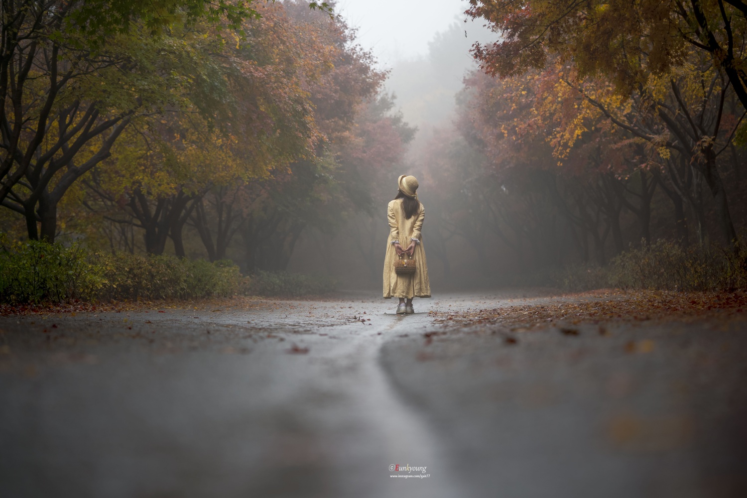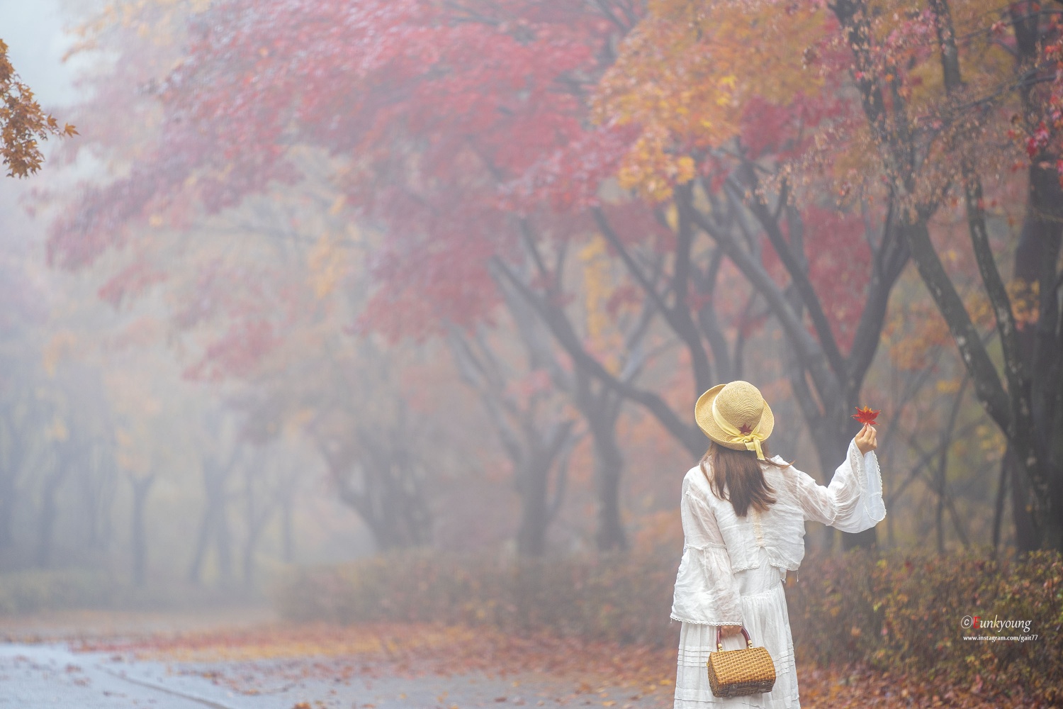 이른 새벽, 부슬비가 내리는 독립기념관의 단풍나무숲길. 비소식이 없었던 날이었는데... 빛을 볼 수 없다는 생각에 잠시 좌절모드에 빠져있던 그 순간. 자욱한 안개가 몽환적인 그림을 그려주던 아침이었습니다.